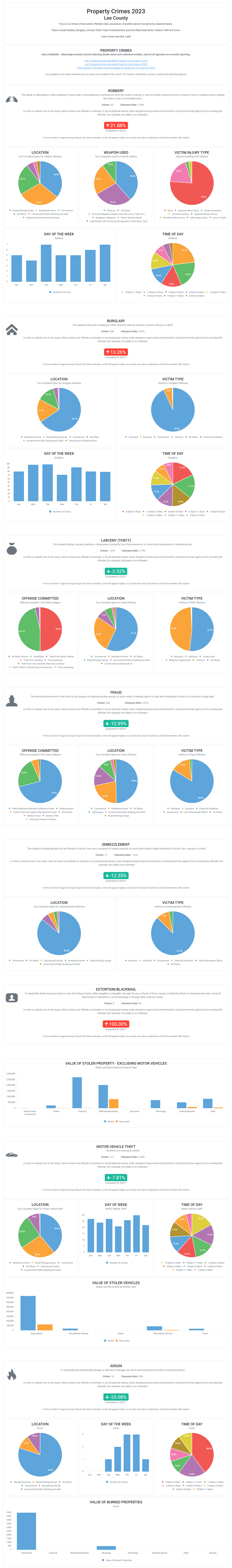 These include Robbery, Burglary, Larceny/Theft, Fraud, Embezzlement, Extortion/Blackmail, Motor Vehicle Theft and Arson.